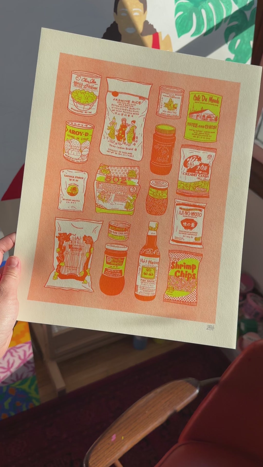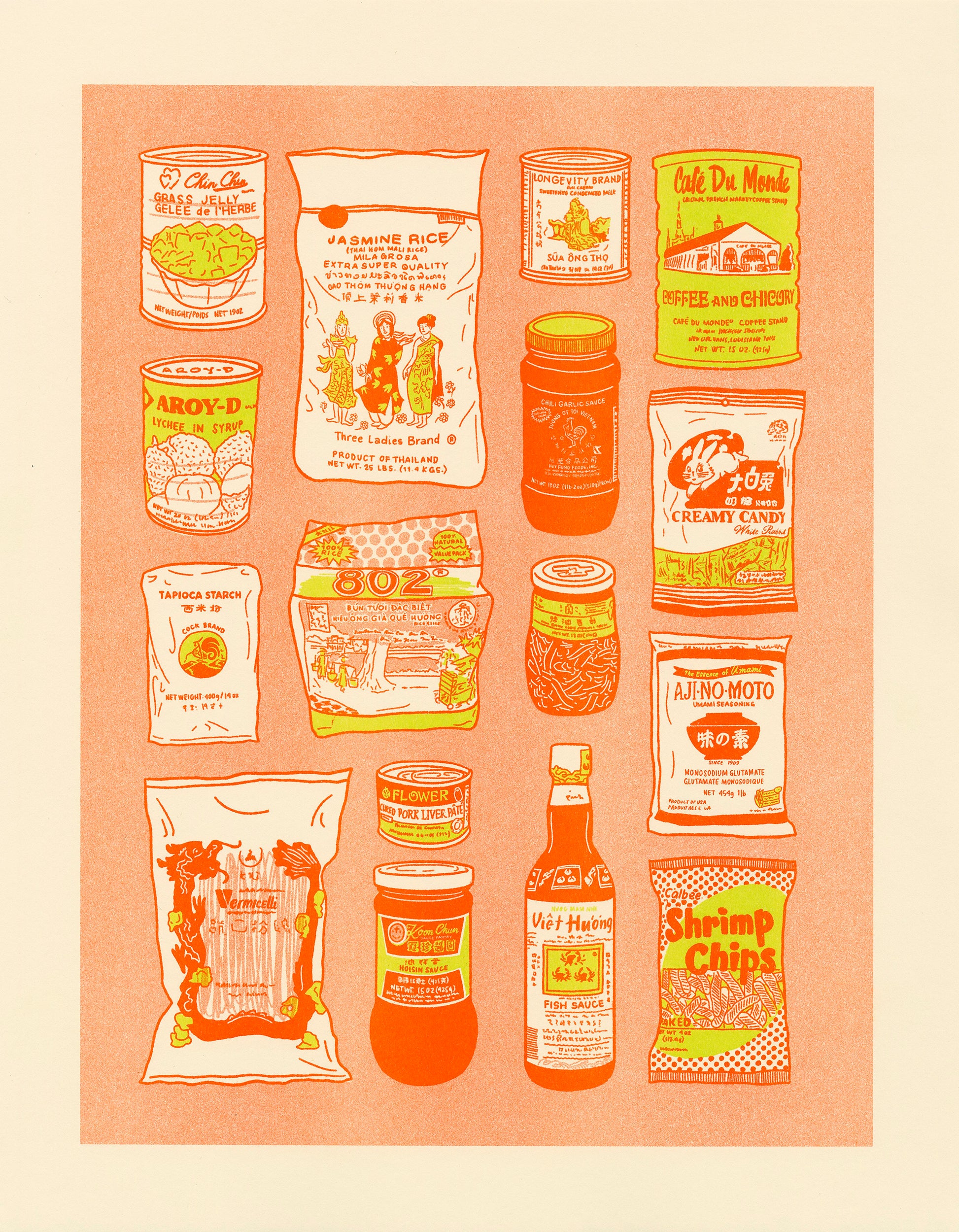 The People's Pantry began as a way to illustrate the foods that I grew up with in my Filipino-American household. But everyone who is part of a diaspora has their own version of this illustration. With this series, I hope to capture some of those stories by partnering with individuals who have their own unique relationships with the foods of their cultural heritage. $20 from the purchase of each print in The People's Pantry collection is donated to the non-profit of my collaborator's choosing.